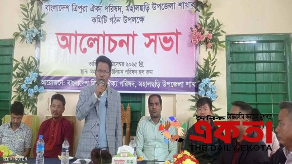 ছানোয়ার হোসেন, মহালছড়ি(খাগড়াছড়ি) প্রতিনিধিঃ খাগড়াছড়ি জেলার মহালছড়ি উপজেলায় শুক্রবার সকাল ১০.৩০ টায় (১৯ ডিসেম্বর ২০২৫) মহালছড়ি উপজেলা ত্রিপুরা ঐক্য পরিষদ কমিটি গঠন কল্পে মহালছড়ি সদর ইউনিয়ন পরিষদ কার্যালয়ে বাবু শ্যামল