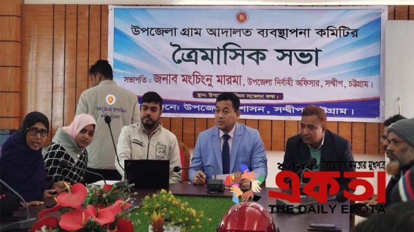 ইলিয়াছ সুমন, সন্দ্বীপ(চট্টগ্রাম) প্রতিনিধিঃ চট্টগ্রামের সন্দ্বীপে জনসাধারণের বিচারিক সেবা আরও সহজ, দ্রুত ও কার্যকর করার লক্ষ্যে গ্রাম আদালত ব্যবস্থাপনা কমিটির ত্রৈমাসিক সভা অনুষ্ঠিত হয়েছে। বৃহস্পতিবার (১ জানুয়ারি) দুপুরে উপজেলা পরিষদের