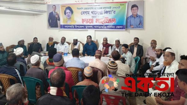 ছানোয়ার হোসেন, মহালছড়ি(খাগড়াছড়ি) প্রতিনিধিঃ খাগড়াছড়ি’র মহালছড়িতে যুবদলের উদ্যোগে দেশনেত্রী ও বিএনপির চেয়ারপারসন বেগম খালেদা জিয়ার দ্রুত রোগমুক্তি কামনায় দোয়া মাহফিল অনুষ্ঠিত হয়েছে। বৃহস্পতিবার বিকেলে উপজেলা বিএনপির কার্যালয়ে এ দোয়া মাহফিলের