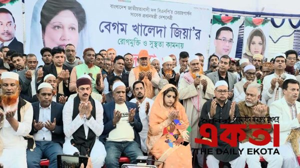 বিলায়েত হোসেন লিটন, বিশেষ প্রতিনিধিঃ ফরিদপুরের নগরকান্দায় সাবেক তিনবারের প্রধান মন্ত্রী বেগম খালেদা জিয়া’ র রোগ মুক্তি কামনায় দোয়া ও মোনাজাত অনুষ্ঠিত হয়েছে। শনিবার বিকালে সরকারি মহেন্দ্র নারায়ণ একাডেমি মাঠে
