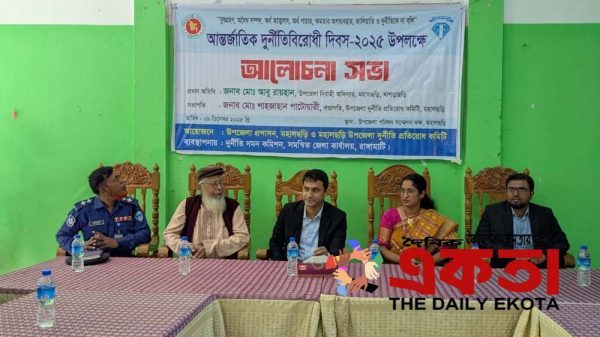 ছানোয়ার হোসেন, মহালছড়ি (খাগড়াছড়ি) প্রতিনিধিঃ “ঘুষগ্রহণ, অবৈধ সম্পদ, অর্থ আত্মসাৎ, অর্থ পাচার, ক্ষমতার অপব্যবহার, জালিয়াতি ও দুর্নীতিকে না বলি” প্রতিপাদ্যকে সামনে রেখে খাগড়াছড়ির মহালছড়ি উপজেলায় আন্তর্জাতিক দুর্নীতিবিরোধী দিবস-২০২৫ উপলক্ষে মানববন্ধন