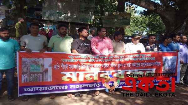 ছানোয়ার হোসেন, মহালছড়ি(খাগড়াছড়ি) প্রতিনিধিঃ খাগড়াছড়ির মহালছড়িতে ১২ নভেম্বর ২০২৫ বুধবার সকাল ১১ টায় ফায়ার সার্ভিস স্টেশন স্থাপন ও আধুনিক উপজেলা স্বাস্থ্য কমপ্লেক্স স্থাপনের দাবিতে মানববন্ধন করেছে ছাত্রদল ও স্থানীয়রা। ১৯৮৪