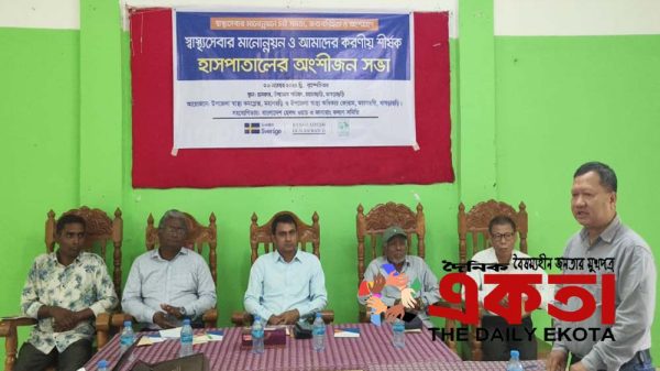 ছানোয়ার হোসেন, মহালছড়ি (খাগড়াছড়ি) প্রতিনিধিঃ খাগড়াছড়ি’র মহালছড়িতে “স্বাস্থ্যসেবার মানোন্নয়ন ও আমাদের করণীয়” শীর্ষক অংশীজন সভা অনুষ্ঠিত হয়েছে। বৃহস্পতিবার সকাল দশটায় উপজেলা পরিষদ হলরুমে উপজেলা স্বাস্থ্য অধিকার ফোরামের আয়োজনে এ সভা