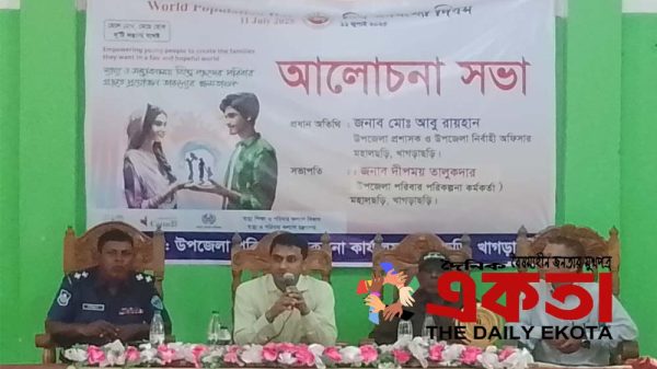 ছানোয়ার হোসেন, মহালছড়ি (খাগড়াছড়ি) প্রতিনিধিঃ ‘ন্যায্য ও সম্ভাবনাময় বিশ্বে পছন্দের পরিবার গড়তে প্রয়োজন তারুণ্যের ক্ষমতায়ন” এই প্রতিপাদ্যকে সামনে রেখে খাগড়াছড়ির মহালছড়ি উপজেলায় পালিত হয়েছে বিশ্ব জনসংখ্যা দিবস-২০২৫। এ উপলক্ষে ১৪
