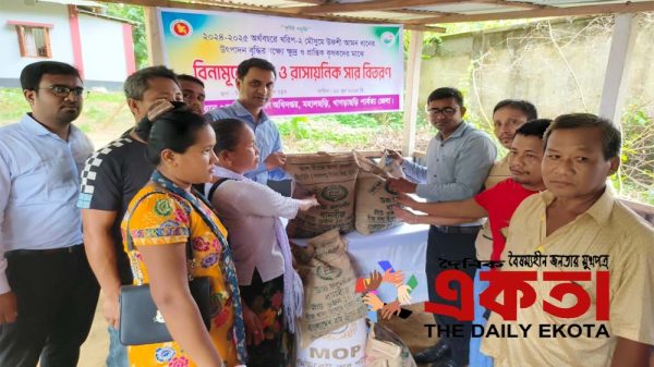 ছানোয়ার হোসেন, মহালছড়ি (খাগড়াছড়ি) প্রতিনিধিঃ ‘কৃষি সমৃদ্ধি, এই প্রতিপাদ্যে খাগড়াছড়ি জেলার মহালছড়িতে বুধবার ২০২৪-২০২৫ অর্থবছরে খরিপ-২ মৌসুমে উফশী আমন ধানের উৎপাদন বৃদ্ধির লক্ষ্যে ক্ষুদ্র ও প্রান্তিক কৃষকদের মাঝে বিনামূল্যে বীজ