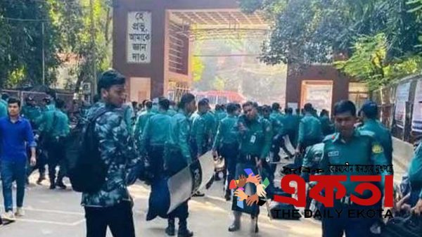একতা ডেস্কঃ রাজধানীর তিতুমীর কলেজের শিক্ষার্থীদের চলমান আন্দোলনের উত্তপ্ততা পরিহারে বিপুল সংখ্যক পুলিশ মোতায়েন করা হয়েছে। এছাড়া মহাখালীর রাওয়া ক্লাবের সামনে থেকে রেলগেট পর্যন্ত সড়কে অবস্থান নিয়েছেন শতাধিক সেনা সদস্য।