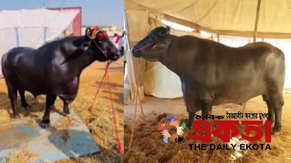 একতা ডেস্ক: ভারতের হরিয়ানার কৃষি মেলায় ঝড় তুলছে কালো রঙের একটি মহিষ। আনমোল নামের ১ হাজার ৫০০ কেজির এই মহিষটির দাম ২৩ কোটি রুপি পর্যন্ত উঠেছে। তবে তা সত্ত্বেও এটিকে