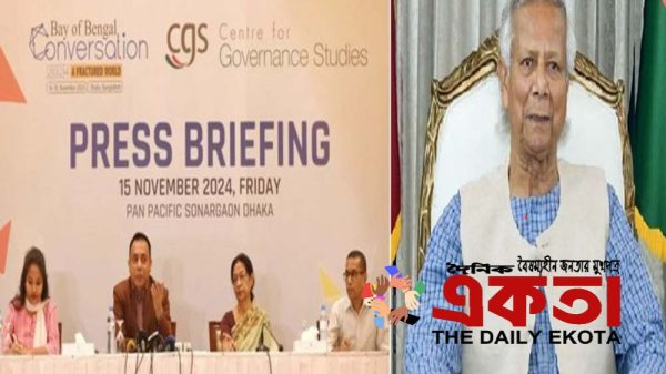 একতা ডেস্ক: বাংলাদেশের সেন্টার ফর গভর্ন্যান্স স্টাডিজের (সিজিএস) আয়োজনে ঢাকায় আজ শনিবার থেকে শুরু হচ্ছে আন্তর্জাতিক ভূরাজনৈতিক সম্মেলন বে অব বেঙ্গল কনভারসেশন (বিওবিসি) ২০২৪-এর তৃতীয় আসর। অন্তর্বর্তীকালীন সরকারের প্রধান উপদেষ্টা