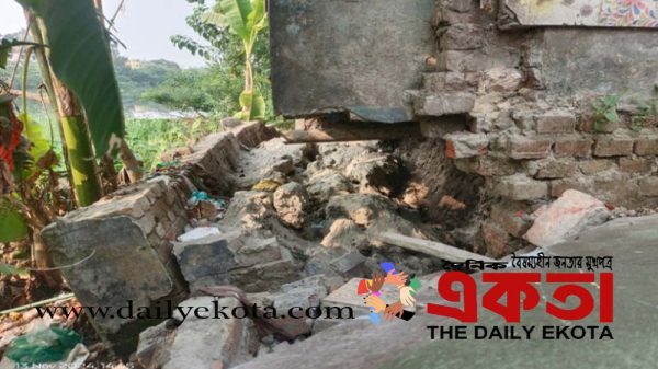 একতা ডেস্কঃ যশোর শহরতলী দিয়ে প্রবাহিত ভৈরব নদের পাড়ের মাটি সরে যাওয়ায় সদর উপজেলার বালিয়াডাঙ্গা পশ্চিমপাড়ার একটি বাড়ির তিনটি ঘর ভেঙে পড়েছে। আরো দুটি ঘরে ফাটলসহ নদের দিকে হেলে পড়েছে।