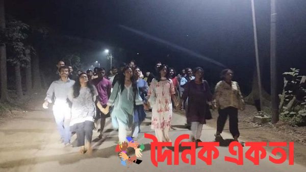 একতা ডেস্কঃ জাহাঙ্গীরনগর বিশ্ববিদ্যালয়ে ইসলামী ছাত্রশিবিরের তিন নেতা প্রকাশ্যে আসার ঘটনার প্রতিবাদ জানিয়ে মধ্যরাতে ক্যাম্পাসে বিক্ষোভ মিছিল করেছে শিক্ষার্থীরা। প্রগতিশীল শিক্ষার্থীদের একটি দল গতকাল মঙ্গলবার দিবাগত রাত দেড়টার দিকে বিশ্ববিদ্যালয়ের