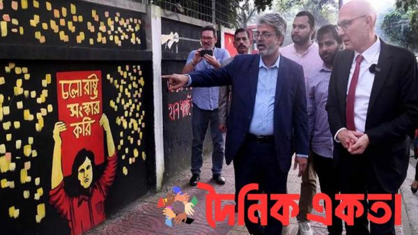একতা ডেস্কঃ ঢাকা বিশ্ববিদ্যালয় (ঢাবি) ক্যাম্পাসে জুলাই গণঅভ্যুত্থানের সময় তরুণদের আঁকা দেয়াল লিখন ও গ্রাফিতি পরিদর্শন করেছেন জাতিসংঘের মানবাধিকারবিষয়ক হাইকমিশনার ফলকার টুর্ক। পরে তিনি ২৪-এর গণঅভ্যুত্থান পূর্ববর্তী ছাত্র আন্দোলনের সমন্বয়কারী