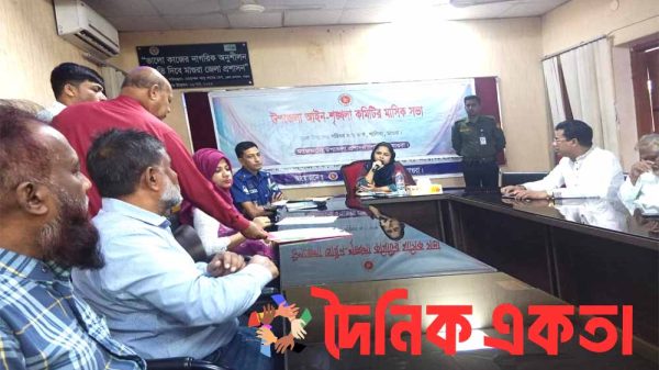 সোহাগ সন্ধিঃ মাগুরার শালিখায় আইন-শৃঙ্খলা বিষয়ক কমিটির মাসিক সভা অনুষ্ঠিত হয় সোমবার। সকাল ১১টায় উপজেলা পরিষদ সম্মেলন কক্ষে অনুষ্ঠিত সভায় সভাপতিত্ব করেন উপজেলা নির্বাহী কর্মকর্তা হাসিনা মমতাজ। বিশেষ অতিথির বক্তব্য
