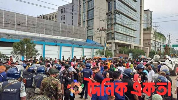 একতা ডেস্ক: বিভিন্ন দাবিতে গাজীপুর নগরের জিরানী এলাকায় আজ সোমবার দুপুরে একটি তৈরি পোশাক কারখানার শ্রমিকেরা বিক্ষোভ করেছেন। এ সময় তাঁরা কারখানার সামনে চন্দ্রা-নবীনগর সড়কে অবস্থান নেন। এতে সড়কে যানবাহন